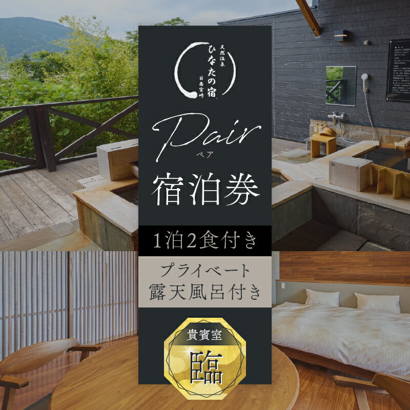【ふるさと納税】ひなたの宿 ペア 宿泊券 1泊2食 付き 貴賓室「臨」 温泉 旅行 観光 トラベル 国内 チケット 和モダン 客室風呂付 天然温泉 露天風呂 高級 贅沢 ご褒美 リゾート リフレッシュ 息抜き レジャー 思い出 記念日 お祝い おすすめ 宮崎県 日南市 送料無料