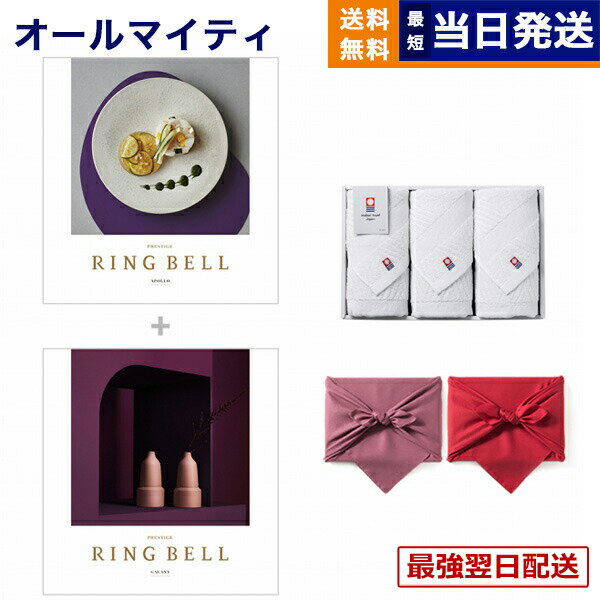 使い勝手の良い今治タオルの純白タオルとカタログギフトをセットにしました。「よろしかったら・・・。」さりげなく添えられるこんな一言に込められた、日本人の美しい気づかい。相手の暮らしを思い、好みを立てる気持ち。あなたのそんな心遣いを、そのまま贈ることのできるカタログギフトです。上品でありながら日常に溶け込み、暮らしをひとつクラスアップさせてくれるようなセンスのいいカタログギフトは贈り先様やご予算に合わせて、11種類のラインナップからお選びいただけます。専用化粧箱に入れてお贈りします。カタログの表紙・内容につきまして、一部内容や表紙が予告なく変わる場合がございます。あらかじめご了承くださいませ。今治 綾 フェイスタオル3枚セットタオルの名産地である四国今治で作られたタオルには100年以上にわたる伝統と職人の業が光ります。日本古来から伝わる伝統的な織り方である「綾織」をイメージした織柄をあしらい、純白のタオルを立体的に仕上げました。パイル部分とガーゼ部分を交互に使い分け、見る角度で表情が変わります。京都・風呂敷京風呂敷の伝統的な作り方を守りつつ、様々な生地、染法を用いたメイドイン京都の風呂敷をお届けします。紬織の両面染風呂敷は、物を包んだときに結び目から裏の色が見えるのが特徴で、広げたときには裏の色が主役となります。隠れたお洒落をお楽しみ下さい。両面無地の風呂敷は、改まったご挨拶から日常使いのご進物、慶弔事など幅広くお使いいただけます。しわになりにくく、お洗濯もでき、生地には適度にハリがあり、結びやすく 使い勝手のよい風呂敷です。こちらは無料にて手提げ紙袋をご用意しております。ご希望の際は『お手渡し用紙袋あり』をご選択ください。■仕様・セット内容1:リンベル RING BELL カタログギフト ギャラクシー&アポロ・タオルのサイズ:約34×70cm・セット商品:今治 綾 フェイスタオル3枚セット・素材:綿100%2冊のカタログの中から、お好きな商品を1点お選びいただけます。タオル製品、衣類、化粧品の交換・返品につきまして、原則として一度も使用していない状態であり出荷と同様の状態であること、タグが納品の状態のまま残っている場合のみ承っております。CONCENTのギフトを販売促進やキャンペーンでご利用いただけます。広告代理店・プロモーションのご担当者様へ「記念品、景品、販促、ノベルティ」などさまざまな用途でご利用いただいております。