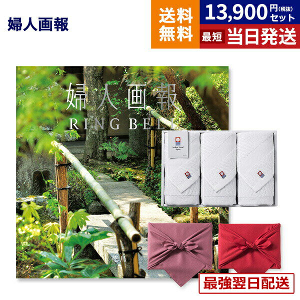 婦人画報 カタログギフト 〔花鳥(かちょう)コース〕+今治 綾 フェイスタオル3枚セット 風呂敷包み 内祝い お祝い 新築 出産 結婚式 快気 引き出物 香典返し 満中陰志 ギフトカタログ プレゼント 女性 おしゃれ ブランド 結婚祝い 年配 上司 1万円コース 送料無料