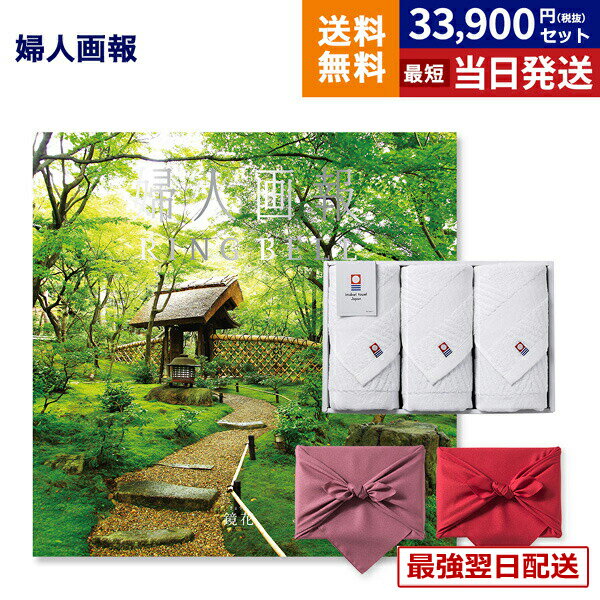 婦人画報 カタログギフト 〔鏡花(きょうか)コース〕+今治 綾 フェイスタオル3枚セット 風呂敷包み 内祝い お祝い 新築 出産 結婚式 快気 引き出物 香典返し 満中陰志 ギフトカタログ プレゼント 女性 おしゃれ ブランド 結婚祝い 年配 上司 3万円コース 送料無料