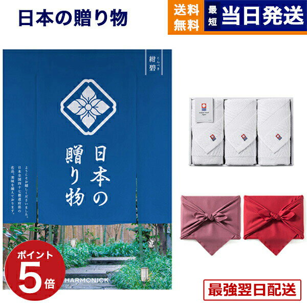 【13時までの注文で当日発送・土日祝もOK】日本の贈り物 カタログギフト 紺碧(こんぺき)+今治 綾 フェイスタオル3枚セット【風呂敷包み】 ギフト お返し プレゼント ゴルフコンペ 景品 結婚祝い お祝い 内祝い 12000円コース 1万2千円 ギフト 最強配送 送料無料