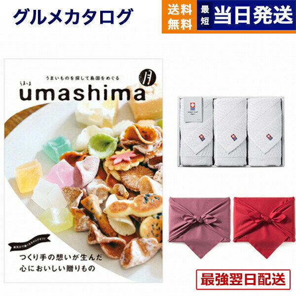 【13時までの注文で当日発送・土日祝もOK】umashima (うましま) グルメ カタログギフト 月(つき)コース+今治 綾 フェイスタオル3枚セット【風呂敷包み】 ギフト プレゼント ゴルフコンペ 景品 結婚祝い お祝い 内祝い 7000円コース 7千円 入学祝い ギフト 送料無料