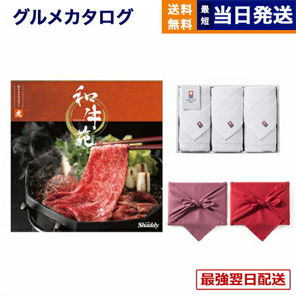 【13時までの注文で当日発送・土日祝もOK】和牛苑 グルメカタログギフト 光(ひかり)+今治 綾 フェイスタオル3枚セット【風呂敷包み】 カタログギフト グルメ ギフト プレゼント ゴルフコンペ 景品 結婚祝い お祝い 内祝い 1万円コース 10000円 入学祝い ギフト 送料無料