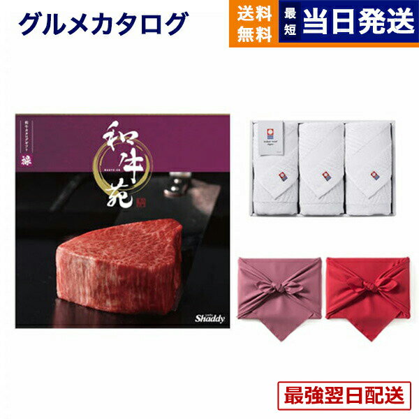 【13時までの注文で当日発送・土日祝もOK】和牛苑 グルメカタログギフト 禄(ろく)+今治 綾 フェイスタオル3枚セット【風呂敷包み】 カタログギフト グルメ ギフト プレゼント ゴルフコンペ 景品 結婚祝い お祝い 内祝い 4万円コース 37000円 入学祝い ギフト 送料無料