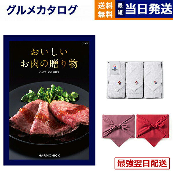 【13時までの注文で当日発送・土日祝もOK】おいしいお肉の贈り物 HMKコース+今治 綾 フェイスタオル3枚セット ギフト お返し プレゼント ゴルフコンペ 景品 グルメ カタログギフト 結婚祝い お祝い 内祝い 1万5千円コース 15000円ギフト あす楽 最強配送 送料無料