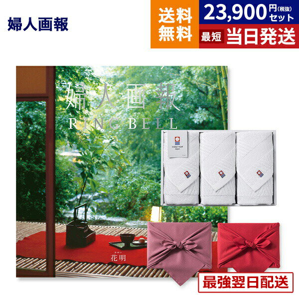 婦人画報 カタログギフト 〔花明(かめい)コース〕+今治 綾 フェイスタオル3枚セット 【風呂敷包み】 内祝い お祝い 新築 出産 結婚式 快気 引き出物 香典返し 満中陰志 ギフトカタログ プレゼント 女性 おしゃれ ブランド 結婚祝い 年配 上司 2万円コース 送料無料