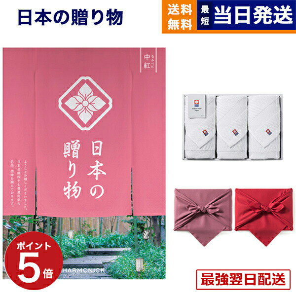 【13時までの注文で当日発送・土日祝もOK】日本の贈り物 カタログギフト 中紅(なかべに)+今治 綾 フェイスタオル3枚セット【風呂敷包み】 ギフト お返し プレゼント ゴルフコンペ 景品 結婚祝い お祝い 内祝い 1万5千円コース 15000円 ギフト 最強配送 送料無料