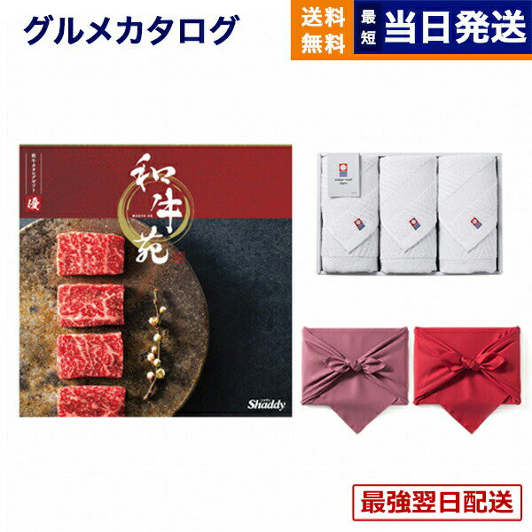 【13時までの注文で当日発送・土日祝もOK】和牛苑 グルメカタログギフト 優(ゆう)+今治 綾 フェイスタオル3枚セット【風呂敷包み】 カタログギフト グルメ ギフト プレゼント ゴルフコンペ 景品 結婚祝い お祝い 内祝い 1万5千円コース 15000円 入学祝い ギフト 送料無料
