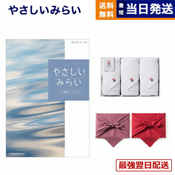 【13時までの注文で当日発送・土日祝もOK】やさしいみらい カタログギフト (さらりコース)+今治 綾 フェイスタオル3枚セット【風呂敷包み】 ギフト プレゼント ゴルフコンペ 景品 結婚祝い お祝い 内祝い おしゃれ 1万円コース 10000円 入学祝い ギフト 送料無料