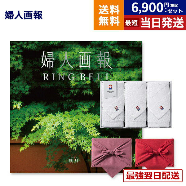 婦人画報 カタログギフト 〔明月(めいげつ) コース〕+今治 綾 フェイスタオル3枚セット 風呂敷包み 内祝い お祝い 新築 出産 結婚式 快気 引き出物 香典返し ギフトカタログ プレゼント 女性 おしゃれ ブランド 結婚祝い 年配 上司 6000円コースギフト 送料無料