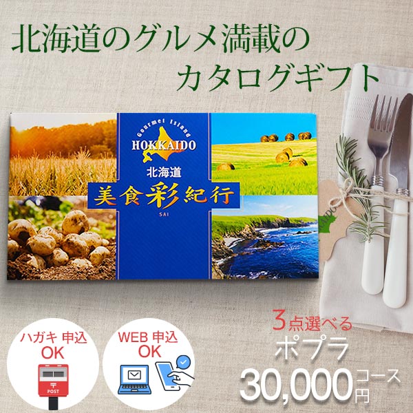 カタログギフト 送料無料 グルメ 美食彩紀行 ポプラ 30000円コース (3点選べる) グルメカタログ 内祝い 記念品 粗品 香典返し 北海道グルメ 初節句 出産祝い 結婚祝い 快気祝い 退職祝い 引き出物 引出物 記念品 法人