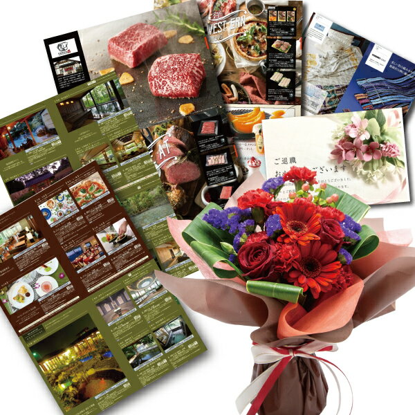 レッド バラ 花束 & 体験ギフト 選べる カタログギフト 還暦祝い 誕生日 プレゼント 結婚祝い 退職 お祝い 父 母 結婚記念日 10周年 生花 レッド 花束とカタログ グルメ ブランド品 雑貨 B-AOO (SE) 結婚 両親 定年退職 フラワーギフト 70代 新築祝い ギフトセット 母親 入学