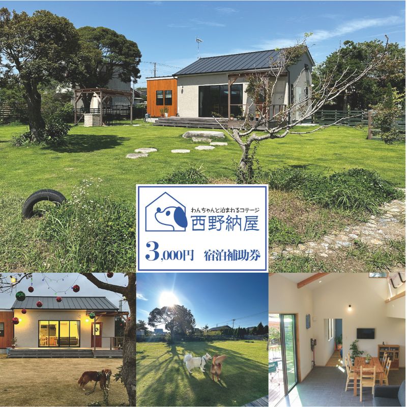 【ふるさと納税】Dog-cottage 西野納屋 ご利用券3000円 チケット 利用券 コテージ ペット ペット連れ ペットと泊まれる宿 貸切 宿泊 旅行 バーベキュー BBQ 海の幸 九十九里 千葉県