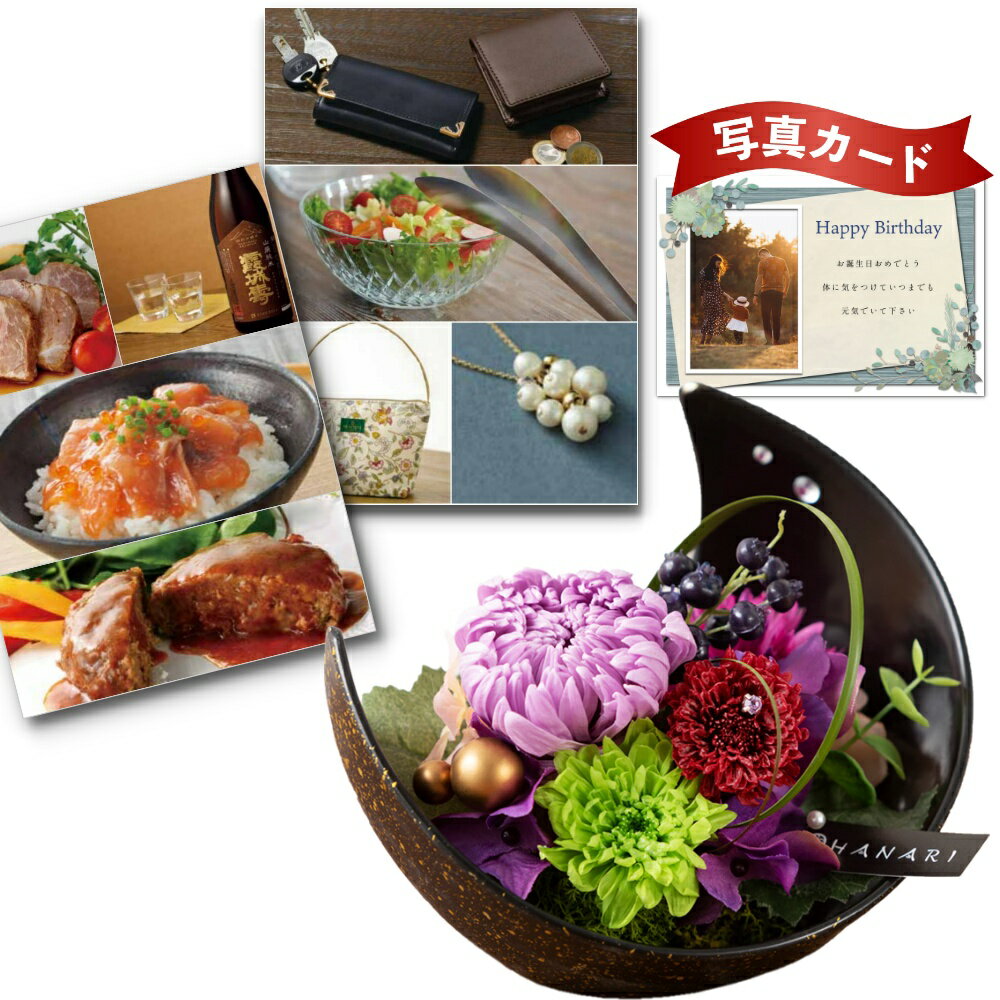 ●こちらの商品は【宅配商品】のため、デジタルメッセージには対応しておりません。 SNSですぐに贈れる【e-Gift】はこちらからどうぞ>>> ●お届け日が「仏滅」にあたる場合がございます。「仏滅」を避けてお届けをご希望の場合には、お届け日をご指定いただくか、備考欄へご指示をお願いいたします。 ●当店では請求書や納品書など、金額の分かる伝票はお品物に同梱しておりません。何卒ご安心下さい。 ●お届け先ご住所の入力間違いや、お届け先様長期ご不在等の理由で、お品物をお届けできず、運送会社での保管期間を過ぎた場合は、お品物はご注文者様へ自動転送となります。 ●宛先不明などにより商品を転送する場合、別途送料が発生いたします。 ●こちらの商品はメーカー包装済のため【外熨斗】のみの対応となります。予めご了承ください。 【商品について】 この商品は、プリザーブドフラワーとカタログギフトの2点セットです。 [カタログギフト] ●体験ギフト・雑貨・グルメが選べるカタログギフトです。画像はイメージです。 ●有効期限は出荷日から6ヵ月となります。 ●カタログギフトの掲載商品は、リニューアルや欠品により改廃を行っています。 ●イメージ画像にある商品が、変更になっている場合がございます。 ●体験商品は、ご利用頂けない地域や、繁忙期などの除外日がございます。 ●お目当ての商品がございましたら事前にお問い合わせ下さい。 ●カタログ掲載商品の海外へのお届けはしておりません。 [プリザーブドフラワー] 夜空に浮かぶ三日月のような美しいフォルムと、3ヵ所にあしらったイミテーションストーンの煌めきが、遠くからでもパッと目を惹く和モダンアレンジです。輪菊など、3種類のプリザーブドフラワーのマムが入った独創的なデザインとなっています。 ●サイズ:W15.5×D11.0×H12.0cm ●ケースサイズ:W20.0×D13.0×H15.0cm ●カラー:パープル系 ▼さまざまな用途でご利用いただけます 【お祝】 結婚祝い 出産祝い 初節句 七五三 入園祝い 入学祝い 卒園祝い 卒業祝い 成人祝い 就職祝い 昇進祝い 新築祝い 引っ越し祝い 引越し祝い 開店祝い 退職祝い 快気祝い 全快祝い 初老祝い 還暦祝い 古稀祝い 喜寿祝い 傘寿祝い 米寿祝い 卒寿祝い 白寿祝い 長寿祝い 金婚式 銀婚式 ダイヤモンド婚式 結婚式 披露宴 引き出物 引出物 結婚引き出物 結婚引出物 ブライダルギフト ウェディングギフト 上棟祝い 記念日 誕生日 結婚記念日 【内祝】 結婚内祝い 出産内祝い 命名内祝い 入園内祝い 入学内祝い 卒園内祝い 卒業内祝い 就職内祝い 新築内祝い 引越し内祝い 快気内祝い 開店内祝い 【お返し・ご挨拶】 お祝い返し お礼 御礼 ごあいさつ ご挨拶 御挨拶 プレゼント お見舞い お見舞御礼 お餞別 引越し 引越しご挨拶 退職 異動 【イベント・記念品】 母の日 父の日 敬老の日 バレンタイン ホワイトデー こどもの日 ひな祭り お正月 文化祭 運動会 七夕 ハロウィン クリスマス ブラックフライデー 年末年始 新生活応援 季節の贈り物 お中元 御中元 お歳暮 御歳暮 お年賀 御年賀 残暑見舞い 年始挨拶 ゴルフコンペ 景品 賞品 粗品 コンペ景品 卒業記念品 定年退職記念品 【弔事・法要】 お香典返し 香典返し 志 満中陰志 弔事 会葬御礼 法要 法要引き出物 法要引出物 法事 法事引き出物 法事引出物 忌明け 四十九日 七七日忌明け志 一周忌 三回忌 回忌法要 偲び草 粗供養 初盆 供物 お供え メモリアルギフト 【商品タイプ】 カタログギフト セレクトギフト カタログ式ギフト ギフトカタログ グルメカタログ 選べるギフト 体験ギフト 老舗ブランド 上質 実用的 高級 シンプル 【ターゲット・関係性】 上司 同僚 部下 友人 両親 親戚 祖父母 子供 会社関係 取引先 男性向け 女性向け 子供向け 家族向け 学生 新社会人 子育て世代 シニア世代 10代 20代 30代 40代 50代 60代 70代 80代 90代 【その他】 即日発送 あす楽対応 可能商品多数 ポイント消化 選べる 人気ランキング入り 大量注文対応 見積書対応 請求書払い 領収書発行 【アイプレゼンツのギフトサービス】 のし無料 ラッピング無料 メッセージカード無料 手提げ袋無料 送料無料 など、各種ギフトサービスも充実しています。 10代?90代まで、幅広い年代や贈る相手に合わせたギフト選びをサポート。 大切な想いを届けるお手伝いを、心を込めてさせていただきます。【限定配布中!】▼お得なクーポンはこちらから▼
