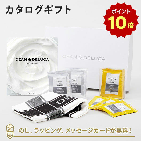 【ポイント10倍】DEAN&DELUCA ギフトカタログ(ブックタイプ) <WHITE-BC(ホワイト-BC)>+ティータオル・ドリップコーヒーセット(ブラック) カタログギフト グルメ 内祝い 結婚祝い 出産祝い ギフト グルメ 引出物 お祝い お返し ディーン アンド デルーカ