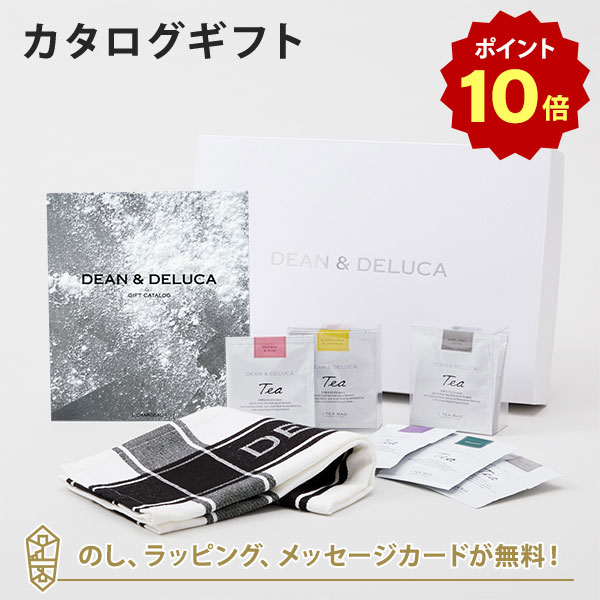 【ポイント10倍】DEAN&DELUCA ギフトカタログ(ブックタイプ) <WHITE-BC(ホワイト-BC)>+ティータオル(ブラック)・ティーセレクションセット カタログギフト グルメ 内祝い 結婚祝い 出産祝い ギフト グルメ 引出物 お祝い お返し ディーン アンド デルーカ
