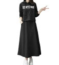 [Celetree]スカートセットセットアップ上下セットレディースルームウェア部屋着スウェット長袖スカートカジュアル楽ちんゆったり春秋(ブラックM)
