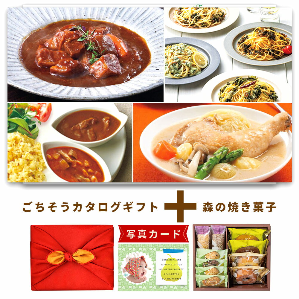 出産内祝い お菓子 と カタログ 風呂敷 セット カタログギフト グルメ お祝い返し Y-CT 森の庭 焼き菓子 10個 洋菓子 内祝い お返し ギフト 結婚内祝い お祝い返し 出産祝い 写真入り 送料無料 写真6000円 (AD) 新築 ギフトセット 5000円 1歳 ベビー