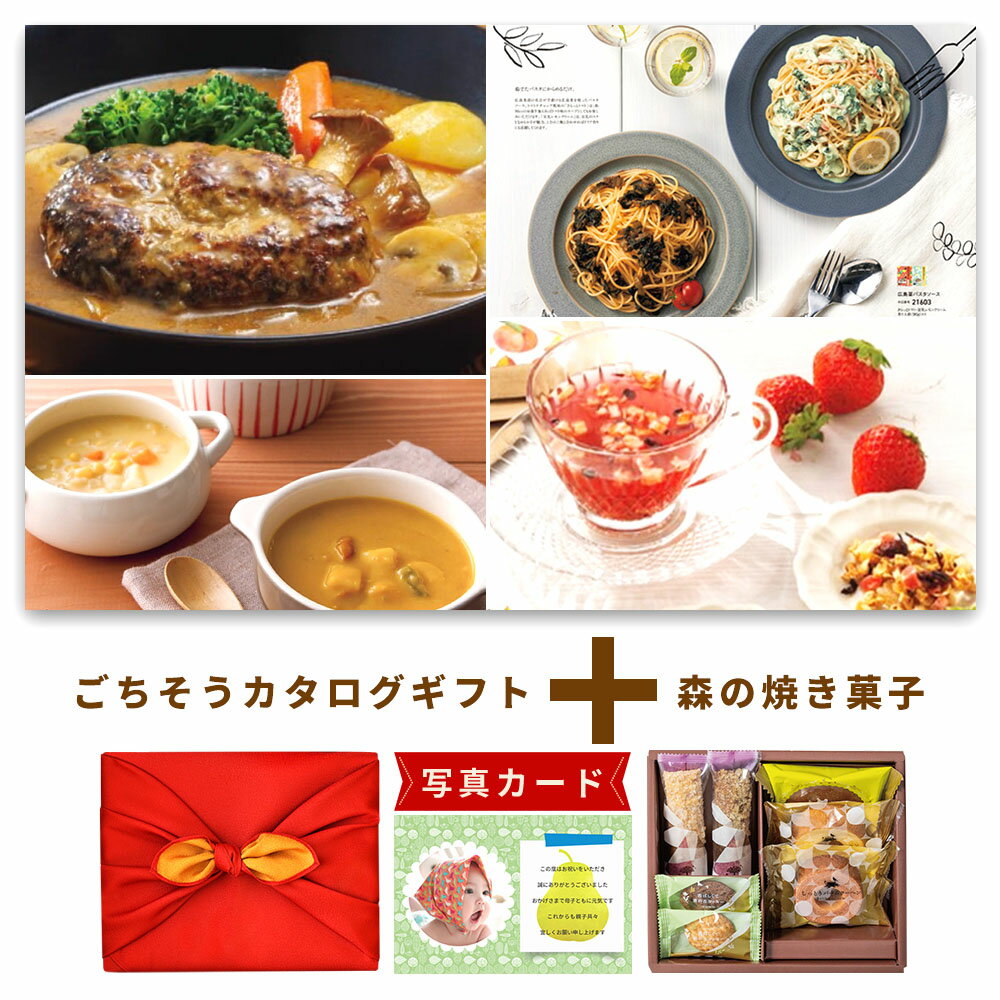 ●こちらの商品は【宅配商品】のため、デジタルメッセージには対応しておりません。 SNSですぐに贈れる【e-Gift】はこちらからどうぞ>>> \カタログ内容の確認はこちらから/ 【商品について】 ●この商品は、カタログギフトにギフト商品をプラスした、2品1セットのギフトセットです。 2点の商品を風呂敷でお包みしてお届けします。 [カタログギフト] 贈り先様にカタログから好きな商品をお選びいただける、グルメカタログギフトです。 毎日がちょっとしあわせになるような『やさしいごちそう』を厳選しました。※画像はイメージです。 ●有効期限は出荷日から6ヵ月となります。 ●カタログギフトの掲載商品は、リニューアルや欠品により改廃を行っています。 ●イメージ画像にある商品が、変更になっている場合がございます。 ●お目当ての商品がございましたら事前にお問い合わせ下さい。 ●カタログ掲載商品の海外へのお届けはしておりません。[セット商品]日常の癒しの世界「森の庭」で、動物たちが咲き誇る花々に喜び、集めた花をリスに贈る物語をパッケージにデザインしました。 両手で手渡しできるプレゼント感あるギフトボックスの中には、素材にまっすぐに向き合ったお菓子をバラエティ豊かに詰め合わせています。 ●商品内容:しっとりバームクーヘン・しっとりバームクーヘン苺×各1、有精卵たっぷりマドレーヌ(プレーン・ショコラ×各1)、香ばしくて素朴なクッキー(ミルク・ショコラ・メープル・チョコチップ×各1)、さくさくスティックパイ(メープル・ショコラ×各1) ●7大アレルゲン:卵,乳,小麦●賞味期限(製造日より):90日●宅配時の状態:常温●箱サイズ(cm):21.2×18.5×7●セット商品はどちらか一方にお熨斗をお付けしています。両方にお熨斗が必要な場合には備考欄にてご指示ください。 ●お熨斗は「ご自宅届け」「複数ご注文」「仏事利用」の場合は【外熨斗】でお届けしております。 上記のご用途で【内熨斗】をご希望の場合は、備考欄にてご指示をお願いいたします。 ※商品によっては【内熨斗】のご指定ができないものもございます。予めご了承ください。 ●お届け日が「仏滅」にあたる場合がございます。「仏滅」を避けてお届けをご希望の場合には、お届け日をご指定いただくか、備考欄へご指示をお願いいたします。 ●お届け先ご住所の入力間違いや、お届け先様長期ご不在等の理由で、お品物をお届けできず、運送会社での保管期間を過ぎた場合は、お品物はご注文者様へ自動転送となります。 ●宛先不明などにより商品を転送する場合、別途送料が発生いたします。 ●当店では請求書や納品書など、金額の分かる伝票はお品物に同梱しておりません。何卒ご安心下さい。 ●こちらの商品には、運賃、メッセージカード、のし、ラッピング、梱包資材、運送事故紛失補償などが含まれたパッケージ価格となっております。 ●ご注文のタイミングにより、注文確定後に在庫切れとなる場合がございます。予めご了承下さい。 ◇◆ 価格から商品を探すにはこちら ◇◆ ======================= ¥3,000までの商品 ======================= ¥3,000から¥5,000の商品 ======================= ¥5,000から¥10,000の商品 ======================= ¥10,000以上の商品 ======================= 他にもいろいろ♪出産内祝いギフト▼ 内祝いで人気の名入れプリンギフトはこちらから▼ 平日正午、土日祝9時までのご注文で即日出荷!"最強配送"商品▼ ▼さまざまな用途でご利用いただけます 【お祝】 結婚祝い 出産祝い 初節句 七五三 入園祝い 入学祝い 卒園祝い 卒業祝い 成人祝い 就職祝い 昇進祝い 新築祝い 引っ越し祝い 引越し祝い 開店祝い 退職祝い 快気祝い 全快祝い 初老祝い 還暦祝い 古稀祝い 喜寿祝い 傘寿祝い 米寿祝い 卒寿祝い 白寿祝い 長寿祝い 金婚式 銀婚式 ダイヤモンド婚式 結婚式 披露宴 引き出物 引出物 結婚引き出物 結婚引出物 ブライダルギフト ウェディングギフト 上棟祝い 記念日 誕生日 結婚記念日 【内祝】 結婚内祝い 出産内祝い 命名内祝い 入園内祝い 入学内祝い 卒園内祝い 卒業内祝い 就職内祝い 新築内祝い 引越し内祝い 快気内祝い 開店内祝い 【お返し・ご挨拶】 お祝い返し お礼 御礼 ごあいさつ ご挨拶 御挨拶 プレゼント お見舞い お見舞御礼 お餞別 引越し 引越しご挨拶 退職 異動 【イベント・記念品】 母の日 父の日 敬老の日 バレンタイン ホワイトデー こどもの日 ひな祭り お正月 文化祭 運動会 七夕 ハロウィン クリスマス ブラックフライデー 年末年始 新生活応援 季節の贈り物 お中元 御中元 お歳暮 御歳暮 お年賀 御年賀 残暑見舞い 年始挨拶 ゴルフコンペ 景品 賞品 粗品 コンペ景品 卒業記念品 定年退職記念品 【弔事・法要】 お香典返し 香典返し 志 満中陰志 弔事 会葬御礼 法要 法要引き出物 法要引出物 法事 法事引き出物 法事引出物 忌明け 四十九日 七七日忌明け志 一周忌 三回忌 回忌法要 偲び草 粗供養 初盆 供物 お供え メモリアルギフト 【商品タイプ】 カタログギフト セレクトギフ