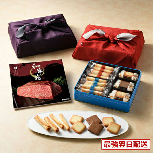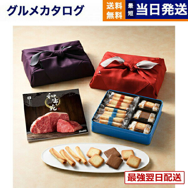 【13時までの注文で当日発送・土日祝もOK】和牛苑 グルメカタログギフト 優(ゆう)+ヨックモック バラエティーギフトS【風呂敷包み】 送料無料 肉 国産牛 シガール サンドクッキー 出産内祝い 新築内祝い 内祝い お返し 結婚祝い 出産祝い 香典返し 入学祝い 13000円台