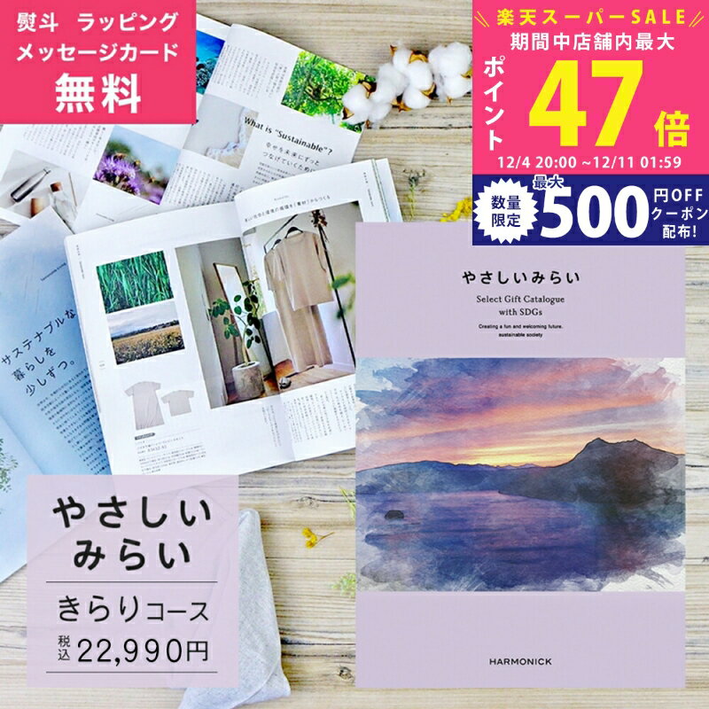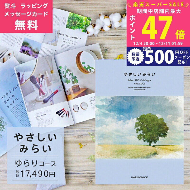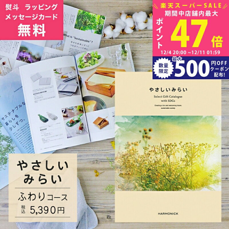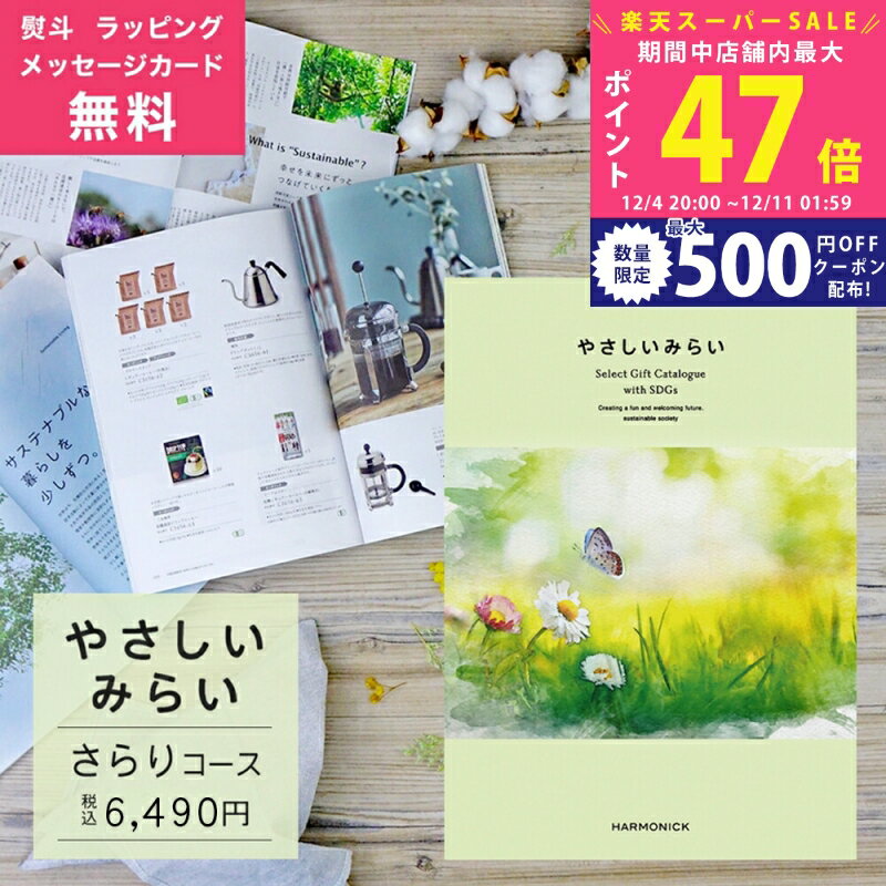 【SS特別P5倍&クーポン】カタログギフト やさしいみらい さらりコース 熨斗 ラッピング メッセージカード 無料 ハーモニック 成人内祝い お祝い 内祝い 引き出物 お歳暮 お中元 香典返し 敬老の日 結婚 出産 入学 ご挨拶 お礼 ギフト プレゼント L2