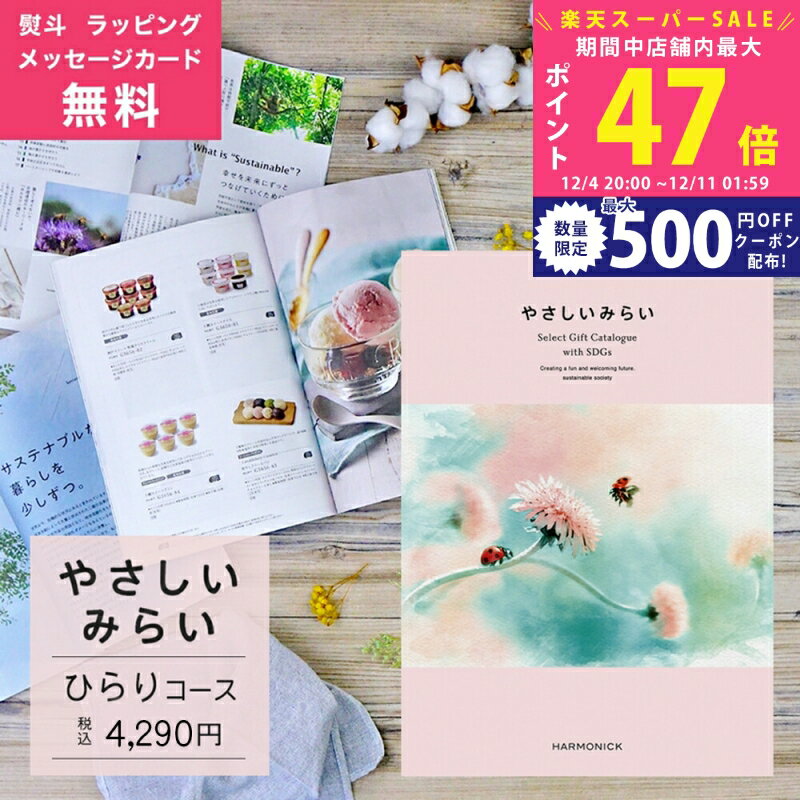 【SS特別P5倍&クーポン】カタログギフト やさしいみらい ひらり コース 熨斗 ラッピング メッセージカード 無料 ハーモニック 成人内祝い お祝い 内祝い 引き出物 お歳暮 お中元 敬老の日志 結婚 出産 入学 お礼 お返し ギフト プレゼント L2