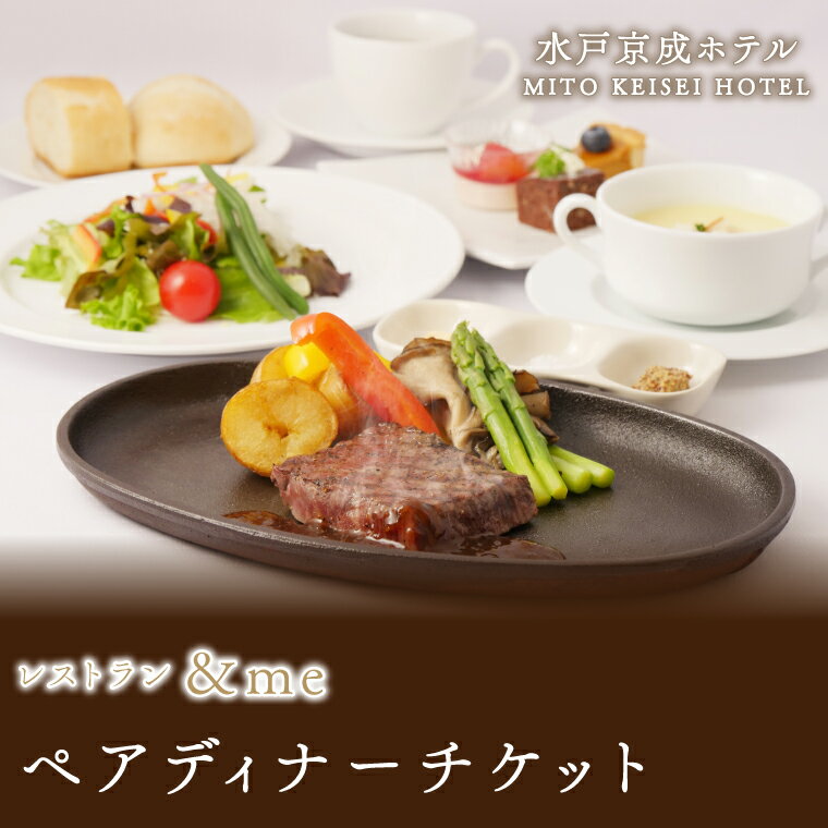 水戸京成ホテル1階のレストラン。イタリアンをメインに、アジアン・エスニック・中華・和風等様々な国の食文化が融合! 「茨城美食の旅」常陸牛を含む茨城県産食材をちりばめた贅沢なコース料理を是非お楽しみください。 名 称 レストラン&me ペアディナーチケット コース内容 1.茨城オードブル盛り合わせ 2.本日のスープ 3.近海平目のポワレ&ハマグリとマッシュルームのグラチネ 4.常陸牛のステーキ 5.ジャージーアイスクリームメロンとイチゴ添え 6.パンまたはライス 7.コーヒーまたは紅茶 有効期限 発行日より半年間(除外日あり) 発送期日 ご入金確認後、1週間程度で発送致します。 注意事項 ※事前予約制 ※ご利用の際はご利用日を事前にご予約ください。その際本券使用の旨をお伝えください。 ※満席の為お断りをさせていただくこともございます。 ※状況によりメニューが変更になる場合もございます。ご了承ください。 提供元 水戸京成ホテル ・ふるさと納税よくある質問はこちら ・寄付申込みのキャンセル、返礼品の変更・返品はできません。あらかじめご了承ください。レストラン&me ペアディナーチケット 入金確認後、注文内容確認画面の【注文者情報】に記載の住所に20日以内に発送いたします。 ワンストップ特例申請書は入金確認後20日以内に、お礼の特産品とは別に住民票住所へお送り致します。