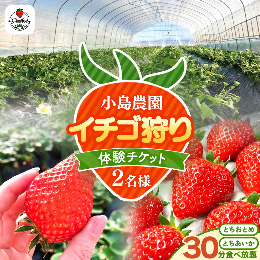 【ふるさと納税】小島農園いちご 狩り チケット 2名 とちおとめ とちあいか 食べ放題|30分 デート お出かけ ファミリー 家族 記念日 体験 希少 柔らかい 果肉 大粒 ジューシー 果汁 いちご 苺 真岡 栃木県 送料無料