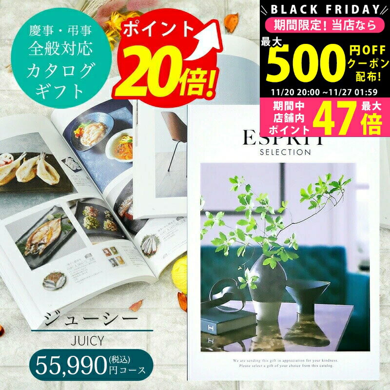 BLACK FRIDAYセール/楽天最安に挑戦【香典返し】送料無料 総合カタログギフト ESPRIT「ジューシー」50,900円(税抜)コース 挨拶状無料 熨斗無料 商品価格50000円 香典返し お返し 四十九日 満中陰志 法事 粗供養 個別配送可 (グルメ/ブランド/スイーツ)