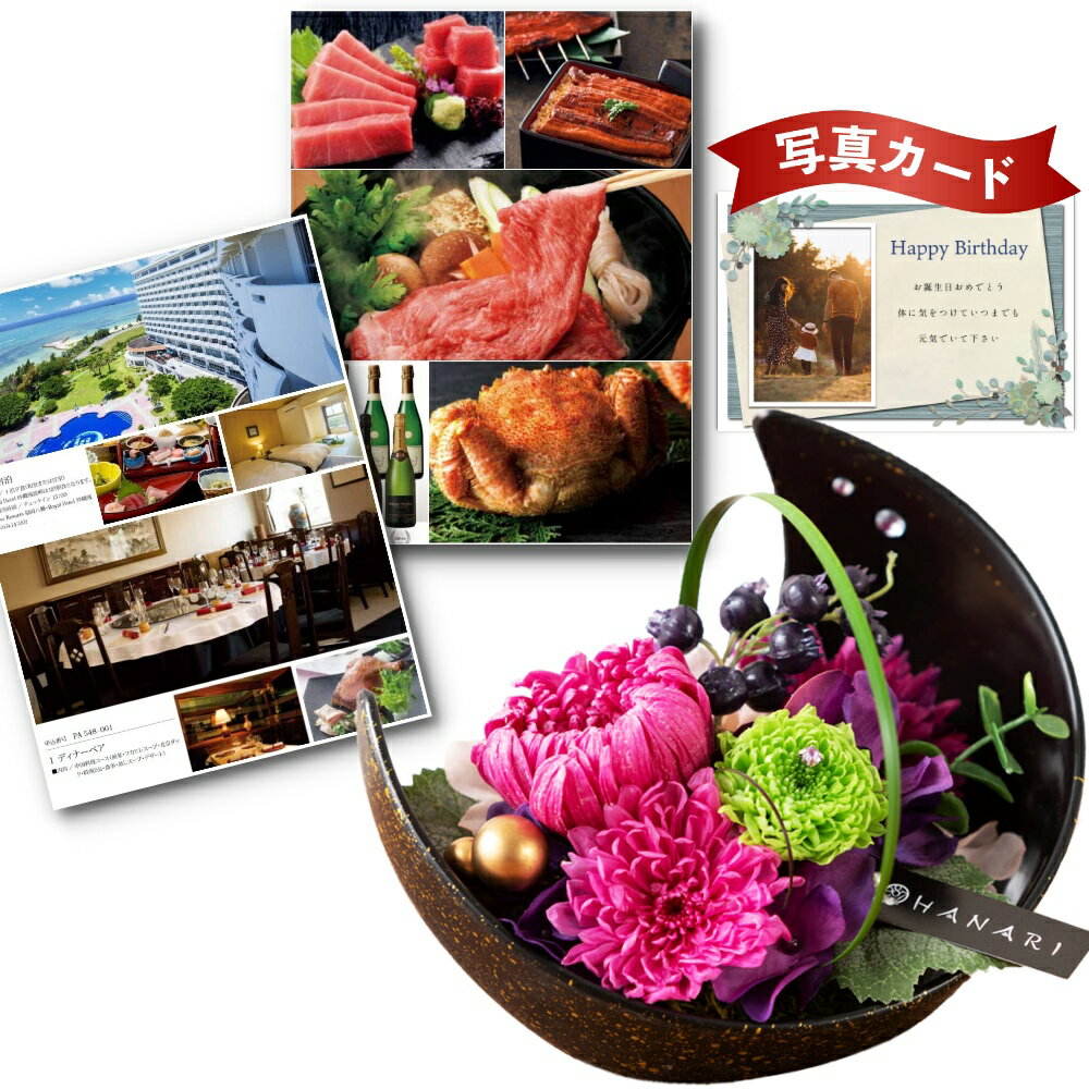 誕生日 宿泊 温泉 お食事 カタログギフト と 花 プリザーブドフラワー 和風 月 紫 ギフト セット お祝い 退職祝い 結婚祝い 母 女性 60代 誕生日プレゼント P-CA (DB)[包装] 花とカタログ 体験ギフト 還暦祝い 定年退職 フラワーギフト 50000円 [花セ] 1dy 両親 七五三