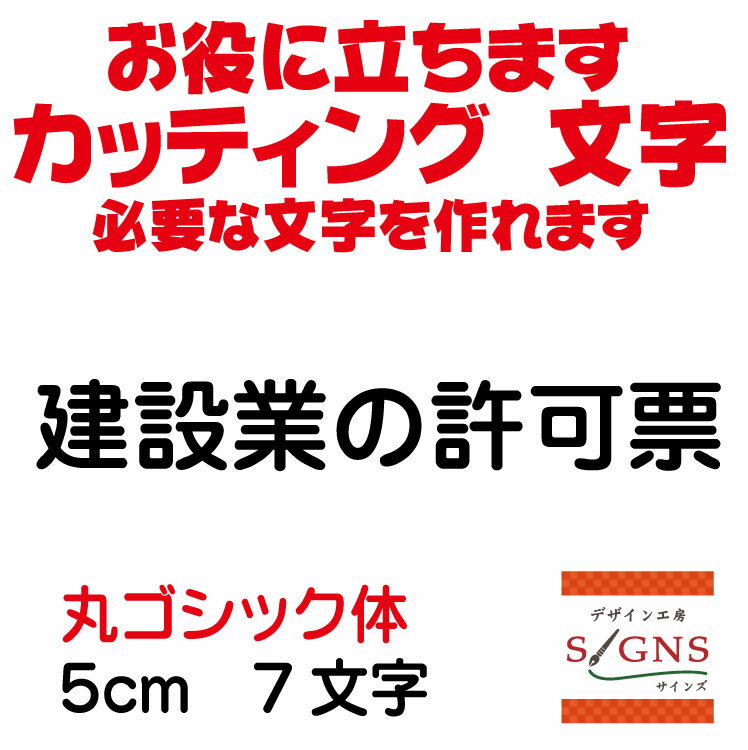 建設業の許可票 カッティングシート 文字 文字シール 切り文字 製作 通販 屋外耐候 販促 集客 売上アップに 看板 案内板 必要な カッティング文字 を作れます。丸ゴシック体 黒 5cm オリジナルグッズ