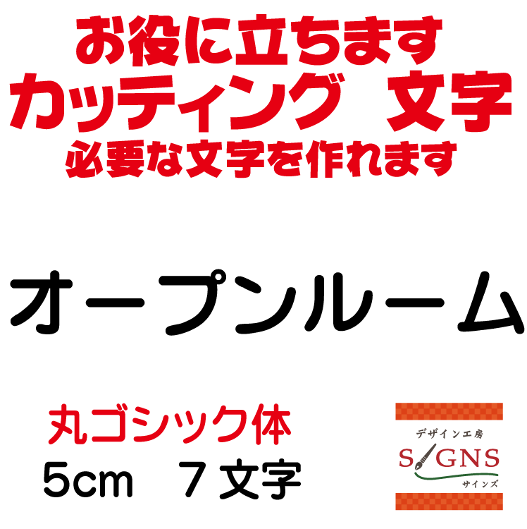 オープンルーム カッティングシート 文字 文字シール 切り文字 製作 通販 屋外耐候 販促 集客 売上アップに 看板 案内板 必要な文字を作れます。丸ゴシック体 黒 5cm オリジナルグッズ