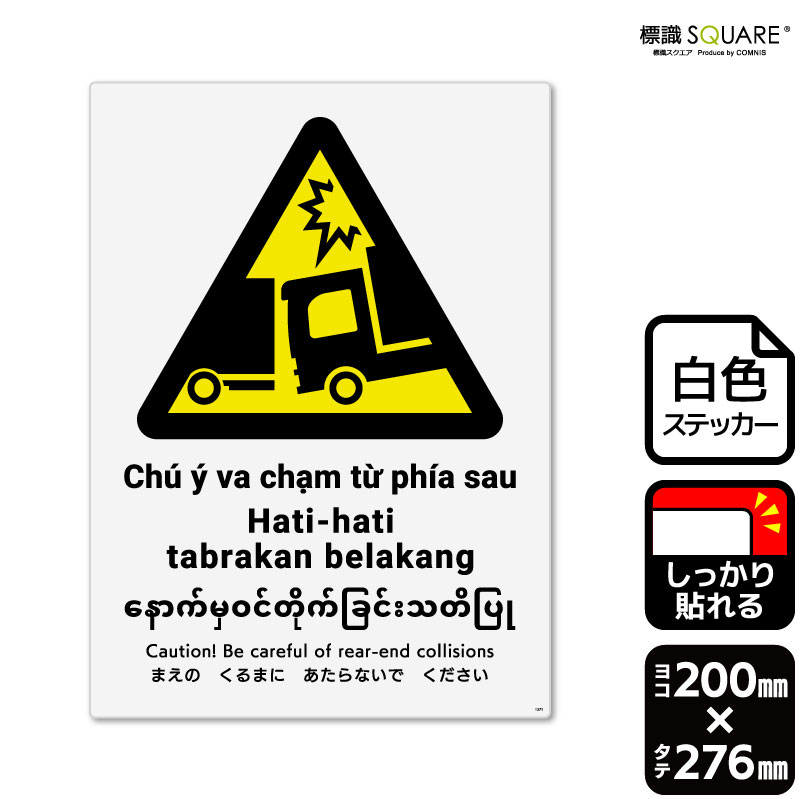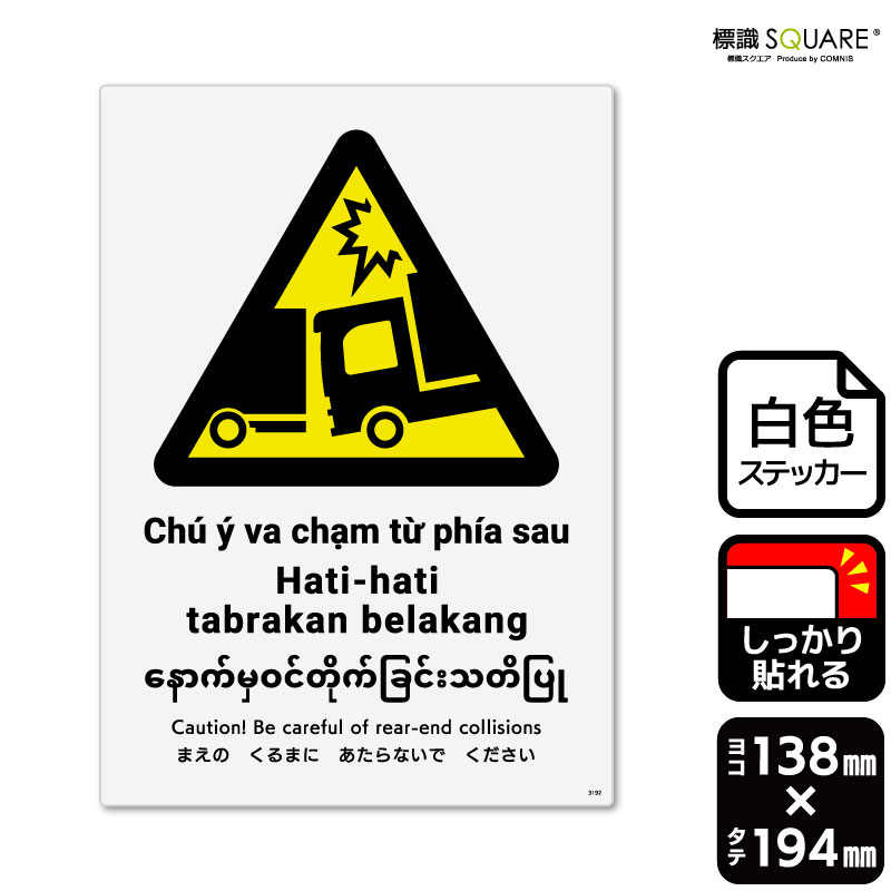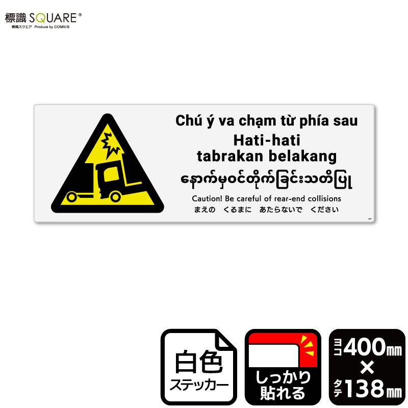 標識SQUARE 「追突注意(トラック)」 CFK1275 【ホワイトフィルムステッカー 強粘着】タテ型 横200mm×縦276mm