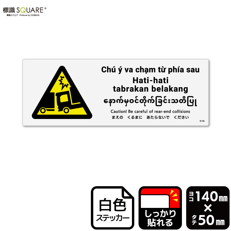 標識SQUARE 「まえのくるまにあたらないでください(トラック)」 CFK8146 【ホワイトフィルムステッカー(強粘着)】 ヨコ型 横140mm×縦50mm 5ラベル