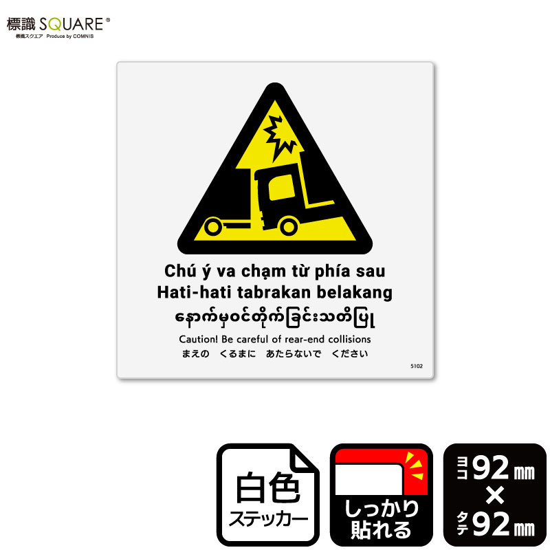 標識SQUARE 「まえのくるまにあたらないでください(トラック)」 CFS5102 【ホワイトフィルムステッカー(強粘着)】 正方形 横92mm×縦92mm 6ラベル