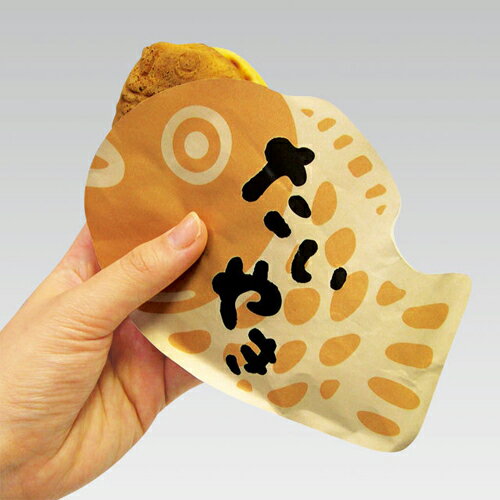 たいやき屋さん必見! インパクトあり!たいやきの形をした専用袋。 耐油紙を使用しているので、油に強くクリスピー感が持続します。 ■安心してご購入頂く為に■ 無料サンプルをご用意しております。品質やサイズ・使用感をお試し頂けます。お気軽に「商品についての問合わせ」からご希望の商品・郵便番号・住所・お届け先名をご記入の上お申し込み下さい。※出荷まで1ヶ月程度かかる場合があります。お急ぎの場合は電話で在庫を確認下さい。至急お調べ致します。 4000枚 8000枚 ■商品名:ダイカットたいやき袋 ■原産国:日本製 ■紙質:耐油紙 ■サイズ:160mm×120mm ■入数:4,000枚入 ■包装仕様:100枚×40