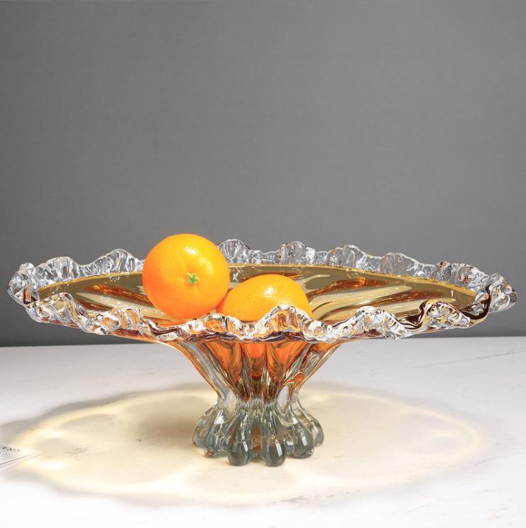 フルーツボウル 家庭用 ガラス 大型 高級感 装飾盤 リビングルーム 茶几 飾り モデルルーム インテリア エレガント テーブルデコレーション サービング皿 モダン