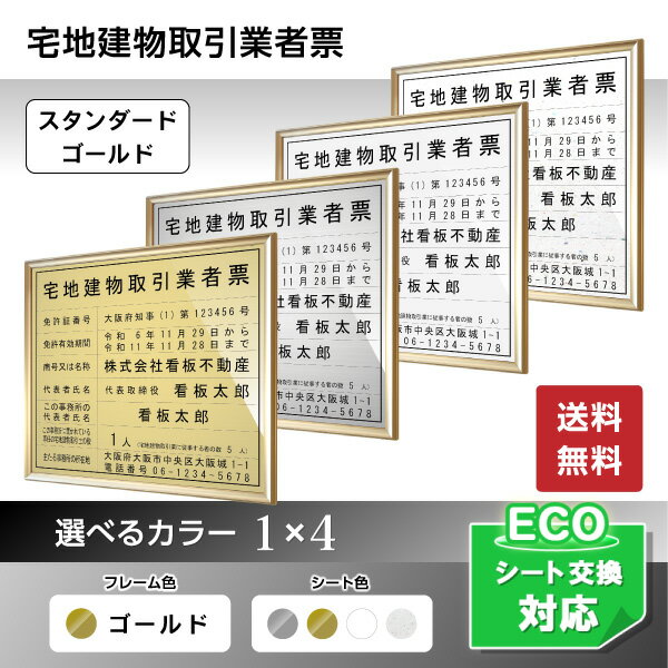 宅地建物取引業者登録票(令和7年4月改正版に対応)スタンダードゴールド / 店舗 事務所用看板 文字入れ 名入れ 別注品 特注品 看板 法定看板 許可票
