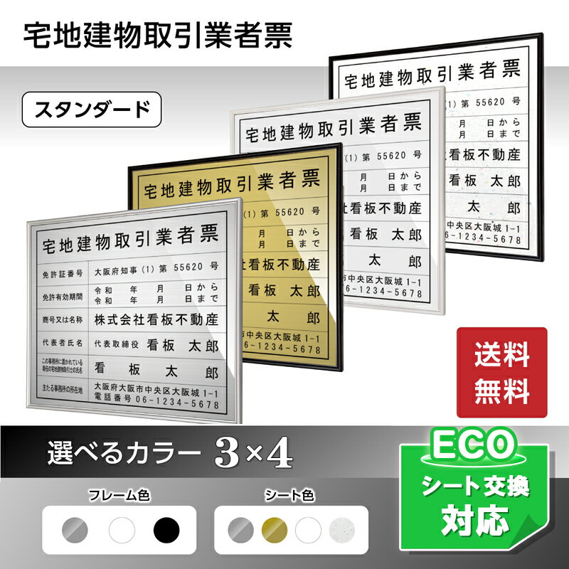 宅地建物取引業者票(令和7年4月改正版に対応)スタンダード 宅建業者票 宅建業標識 法定看板 不動産業者用 令和7年改正版対応 スタンダードタイプ 法定標識 送料無料|法定看板堂