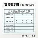 現場表示用 労災保険関係成立票 H35×W45cm アルミ複合板 項目のみ 建築現場 建築工事 工事現場 業者票 法令看板 法令許可票 許可票 看板 標識 grousai-frame