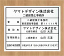ホワイトマットシート(シールタイプ)に文字を印刷しています。 更新時はシートのみ交換できるので経済的です。 表面にアクリル板を配置することによりUVをカットして文字の色褪せを防いでいます。 額の中身は、表面から、1.アクリル板(1mm)2.シート(0.15mm)3.裏厚紙(5mm)となっています。 額縁はアルミ製です。 サイズW455×H405×D15mm 重量550g 掛け紐・金具付き ■注文方法 1.許可票・登録票を当店までFAX:050-3730-7304もしくはメール添付:info@shirushidou.com(PDFor写真)してください。 2.当店にて項目を入力したデザインを作成して登録メールアドレスに添付送信します。 3.必ず内容を確認して、修正がある場合でもない場合でもご連絡ください。最終的にOKのご連絡を頂いてから最長5営業日後の発送となります。 ※Okを頂いた後は内容変更できませんのでご注意ください。当店の法定看板は全て法令順守の統一サイズ!社内行政書士が責任をもって監修しています。 全ての法定看板の記載項目およびサイズを当社の社内行政書士が監修したうえで、 看板サイズを縦400mm×横450mmに統一。 例えば、「宅地建物取引業者票」と「宅建報酬額票」を並べて飾ってもすっきり見えます。 同じ大きさで統一された看板はスッキリ見え、会社としての印象もよくなります。 高品質な質感 法定看板のフレームはアルミ素材で、フレームのデザインは2種類から、 色はゴールドまたはシルバーから選べます。 お求めやすいスタンダードシリーズ 板面はつや消しシルバー または ゴールド 高級感あふれるプレミアムシリーズ 板面は本物の真鍮(しんちゅう)またはステンレス板+光沢透明シート(印字面) 全ての商品には透明の表面カバーを付けています。 表面カバーは(株)クラレ製の1mm厚アクリル板を使用し、シート表面の印刷インクの劣化原因となるUV(紫外線)をカットしています。 更新時も安心!当店におまかせください。 ツギハギ看板撲滅! 例えば建設業許可は、5年に一度更新があります。そのたびに許可年月日などを書き換える必要があります。 また、代表者や商号の変更時なども書き換えの必要が出てきます。 その際に、テプラなどで白いシールをツギハギしている看板をよく見かけます。 ツギハギだらけの看板はもうやめにしませんか? 会社の看板は常に見られています。 当店の法定看板は更新時にフレームを開けてシートを入れ替えるだけ。 交換シートのみの注文が可能ですので、安価に、しかも簡単に書き換えが可能です。 法定看板 スタンダード シートの差し替え手順 法定看板 プレミアム シートの差し替え手順