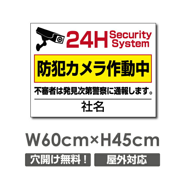 【24H防犯カメラ作動中】W600mm×H450mm 名入れ無料 不法投棄 監視カメラ 作動中 監視中 24時間 録画中 屋外 オーダー セキュリティ看板 エトセトラ 屋外ゴミ捨て迷惑行為防止対策 私有地 マンション管理 camera-208