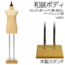 和装ボディ 木製台 かんざし型ヘッド レディース 着付けマネキン 腕なしトルソー ベージュニット張