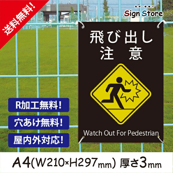注意喚起 看板【飛び出し注意】210×297mm 看板プレート サイン 日本 案内 サインプレート 看板標識 看板防止 注意 迷惑 工場 店舗 公園 駐車場_D. 13_a4y_w297h210_tobidasid