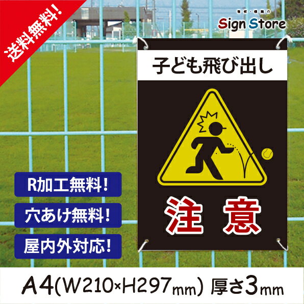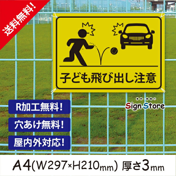 注意喚起 看板【子ども飛び出し注意】210×297mm 看板プレート サイン 日本 案内 サインプレート 看板標識 看板防止 注意 迷惑 工場 店舗 公園 駐車場_E. 13_a4y_w297h210_tobidasie