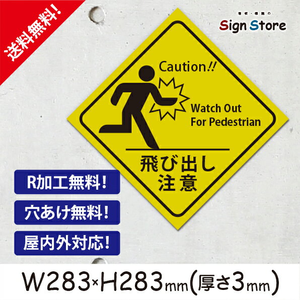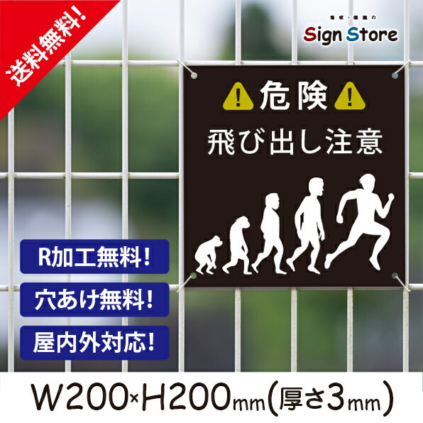 注意喚起 看板【飛び出し注意】200×200mm 看板プレート サイン 日本 案内 サインプレート 看板標識 看板防止 注意 迷惑 工場 店舗 公園 駐車場_スクエアサイズG. 13_s_w200h200_tobidasig