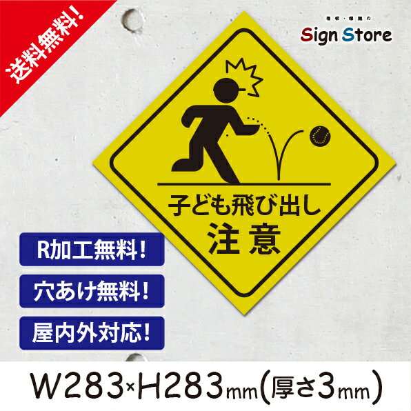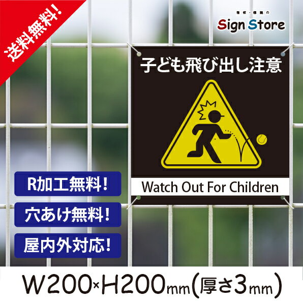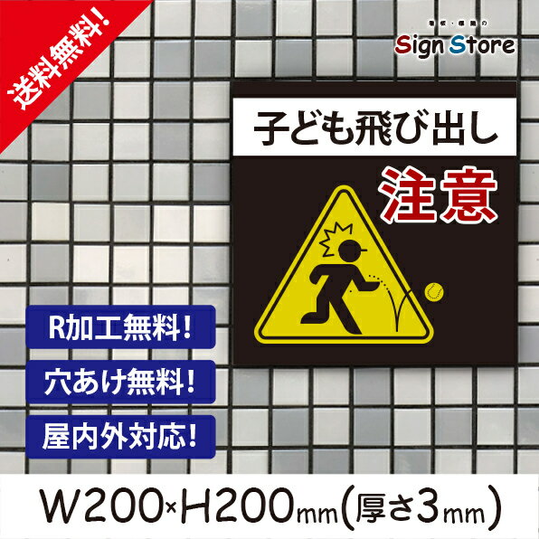 注意喚起 看板【子ども飛び出し注意】200×200mm 看板プレート サイン 日本 案内 サインプレート 看板標識 看板防止 注意 迷惑 工場 店舗 公園 駐車場_スクエアサイズH. 13_s_w200h200_tobidasih