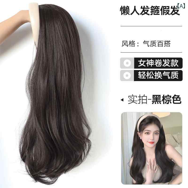 ヘアバンド付きウィッグ レディース ロング 巻き髪 ハーフウィッグ 高温耐熱ファイバー 付け毛 黒髪 茶髪 自然 ふんわり イメチェン