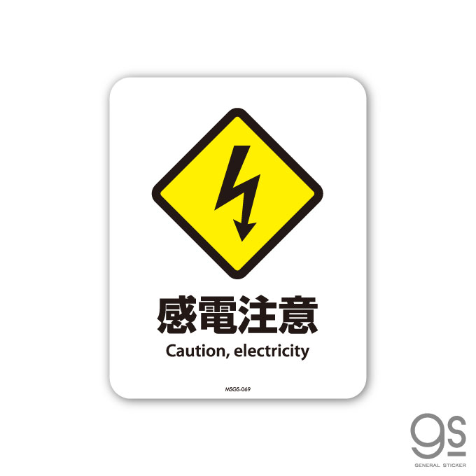 サインステッカー 感電注意 Caution, electricity ミニサイズ 再剥離 表示 識別 標識 ピクトサイン 室内 施設 店舗 民泊 MSGS069 gs ステッカー