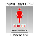 ▼ TOILET 女性 透明ステッカー 5枚1組セット JIS規格安全標識 2018年改正版 H15×W10cm / 標識 ステッカー シール un-807-71B